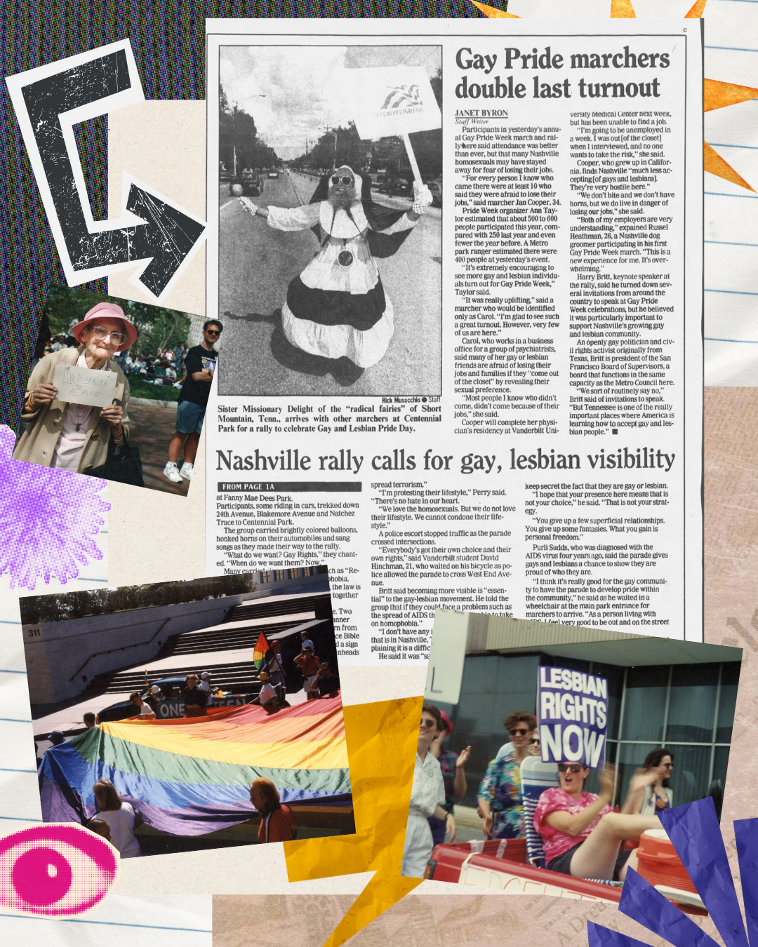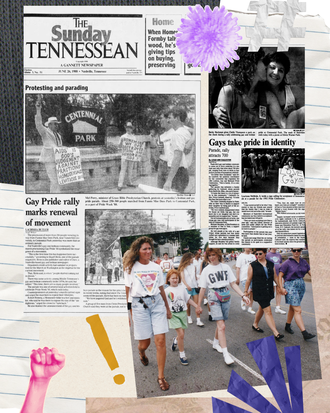 Sources: Nashville Queer History; Dare, June 22, 1988; Joey Gill, “Nashville Pride Festival breaks attendance record with over 75,000 attending,” WSMV, June 27, 2019.